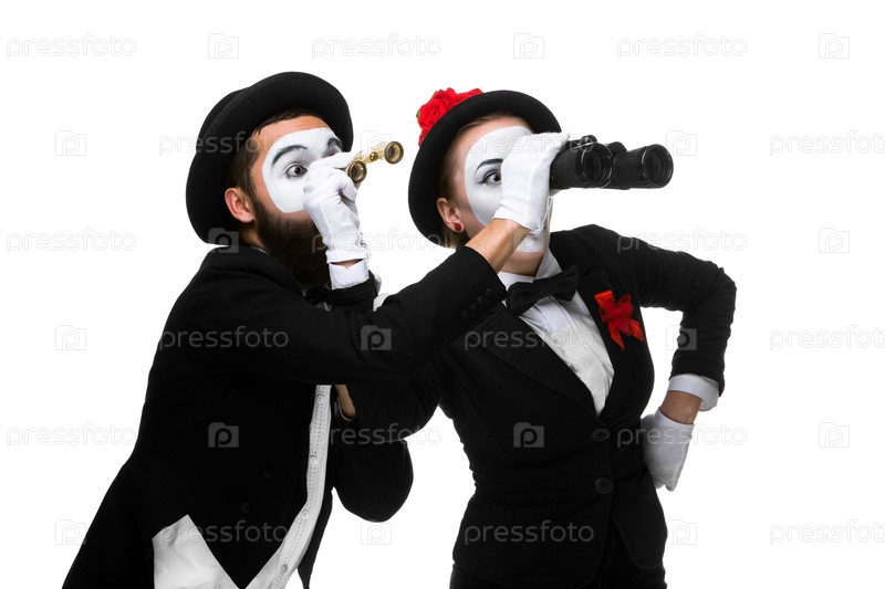 Два мима на белом фоне
