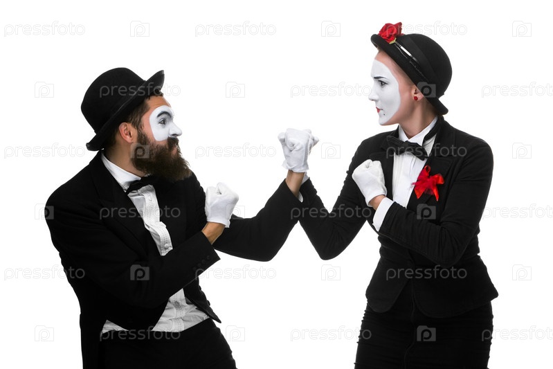 Два мима на белом фоне