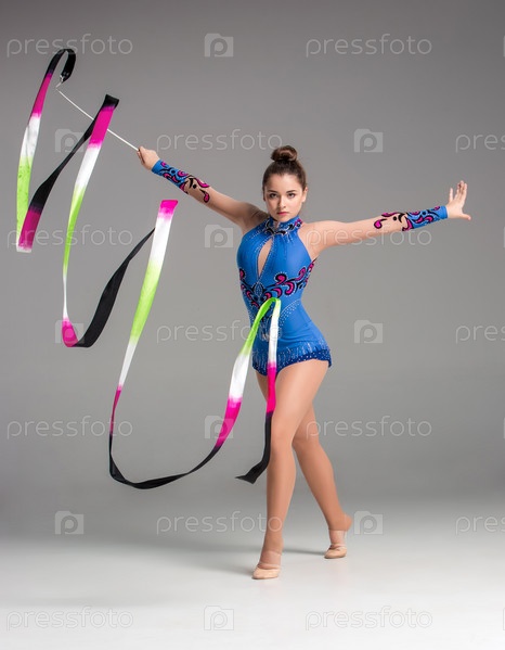 Гимнастка на сером фоне