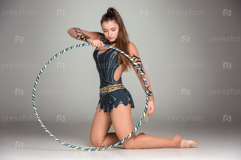 Гимнастка на сером фоне