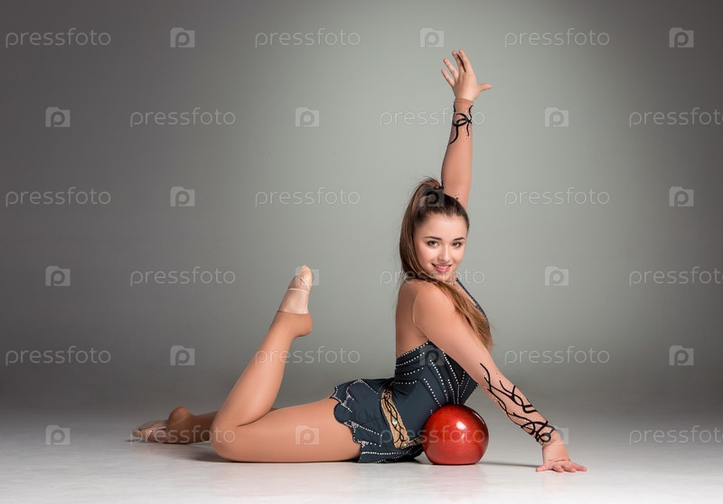 Гимнастка на сером фоне