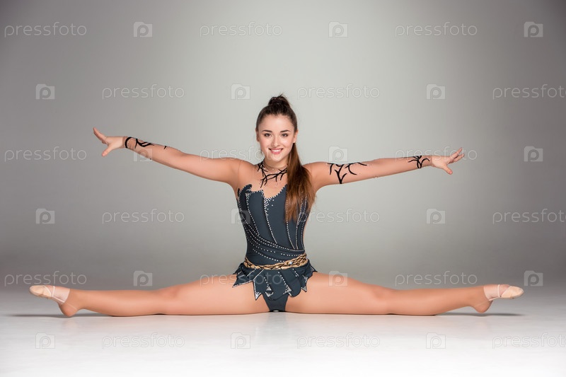 Гимнастка на сером фоне