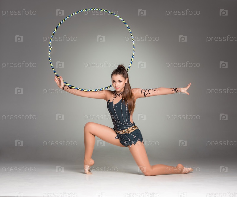 Гимнастка на сером фоне