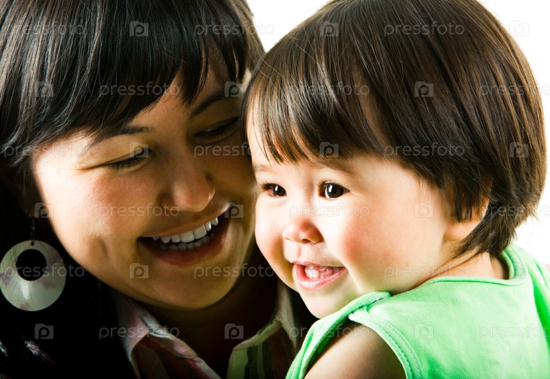Лицо улыбающейся маленькой девочки со своей любящей матерью на заднем плане