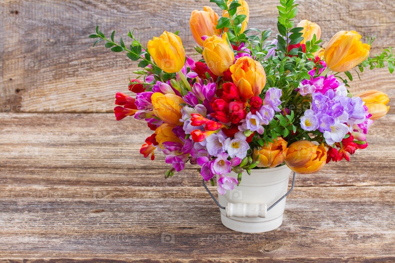 Фрезии и тюльпаны