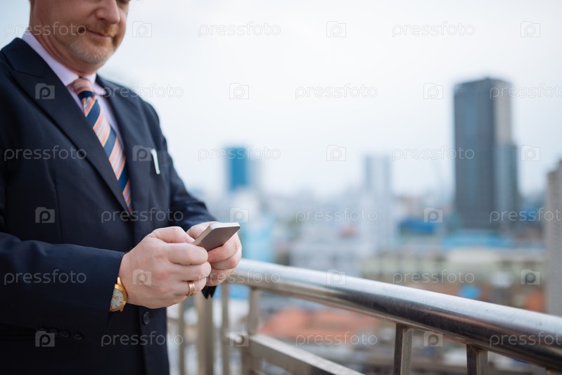 Бизнесмен набирает текстовое сообщение