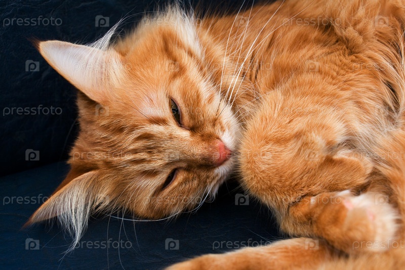 Морда спящей рыжей кошки