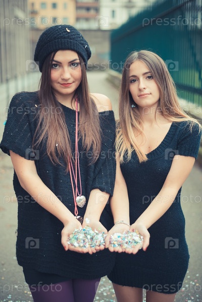 Две стильные девушки в городе