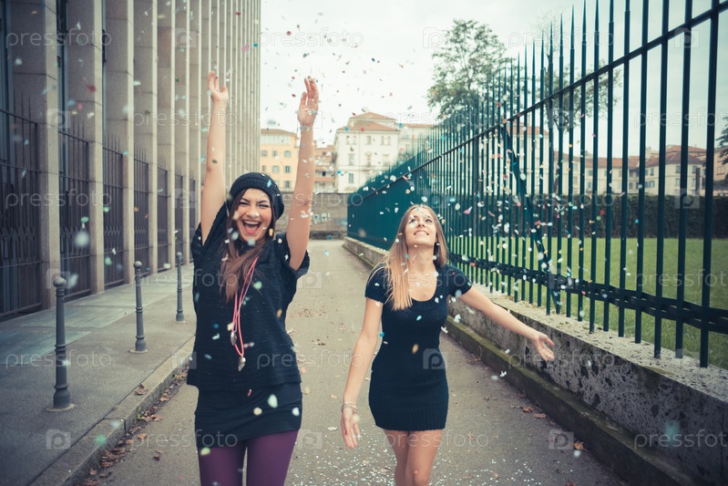 Две стильные девушки в городе