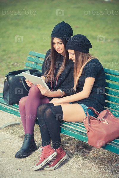 Две стильные девушки в городе