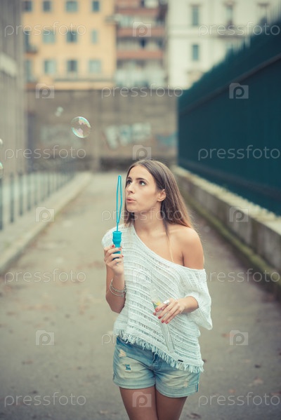 Девушка пускает мыльные пузыри
