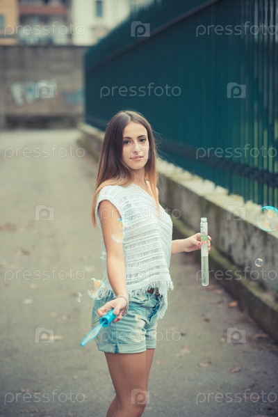 Девушка пускает мыльные пузыри