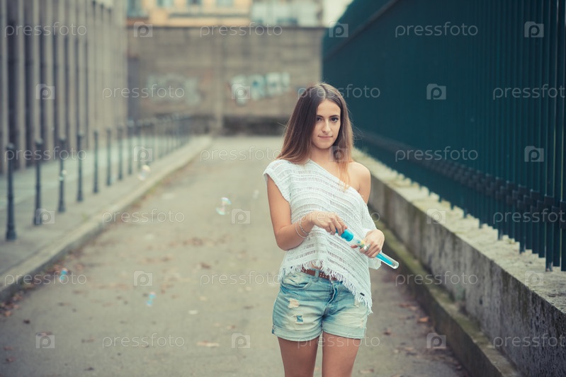 Девушка пускает мыльные пузыри