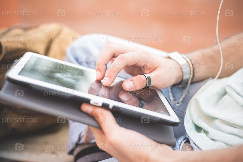 Руки с планшетом крупным планом