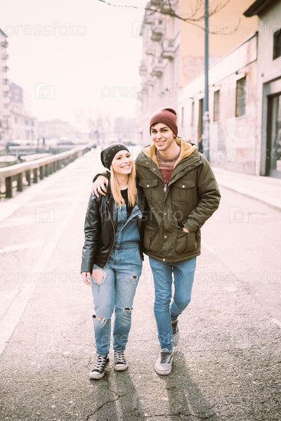 Молодая стильная пара на улице