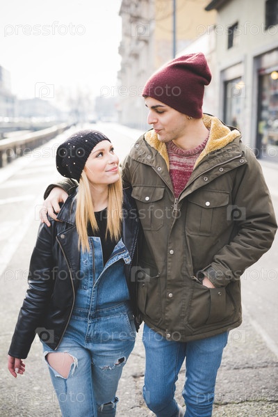 Молодая стильная пара на улице