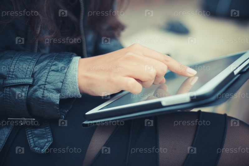 Планшет в женских руках крупным планом
