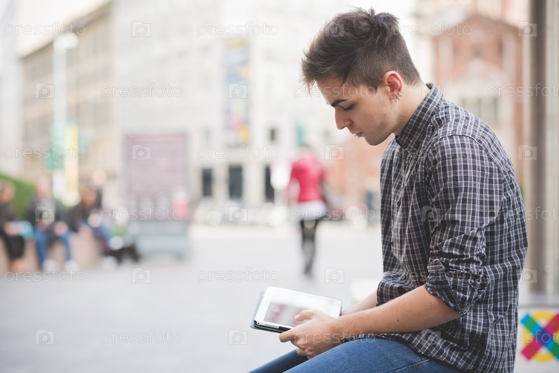 Молодой мужчина с планшетным компьютером