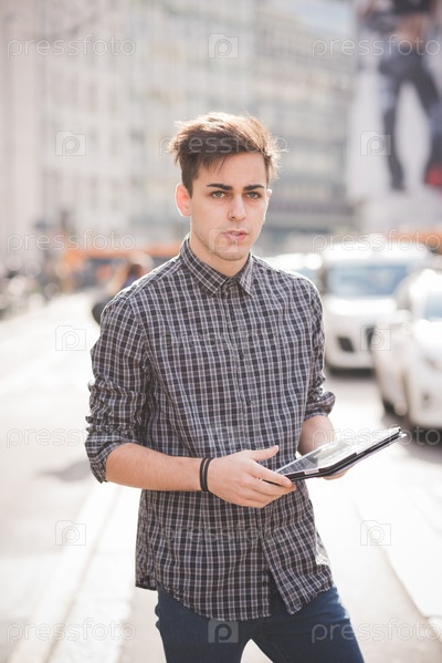 Молодой мужчина с планшетным компьютером