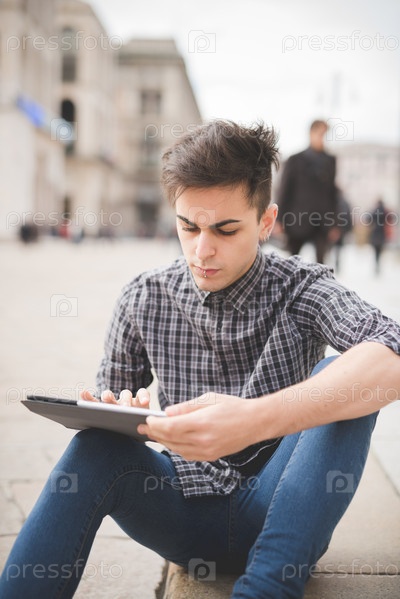 Молодой мужчина с планшетным компьютером
