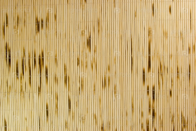 Фрагмент бежевой бамбуковой циновки, изготовленной из бамбуковых палочек