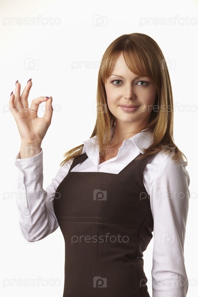 Молодая девушка в строгом платье на белом фоне