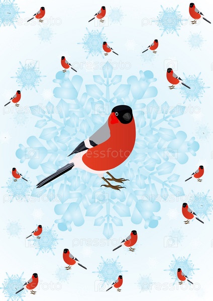 Зимняя открытка со снегирями