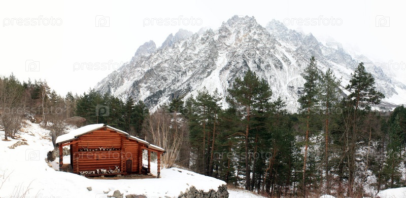 святое место святыня цей горы северная осетия алания панорама религия православие язычество деревянный сруб череп рога ущелье зима