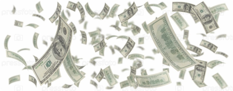 Изолированный Стодолларовый дождь над белым