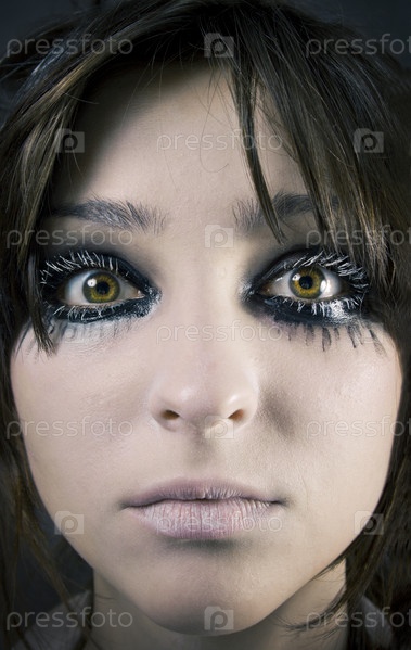 Лицо женщины вблизи, большие глаза и ресницы
