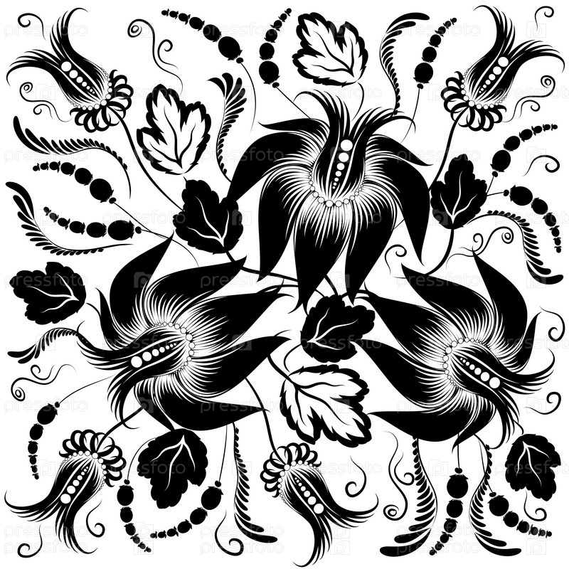 Черные цветы на белом фоне