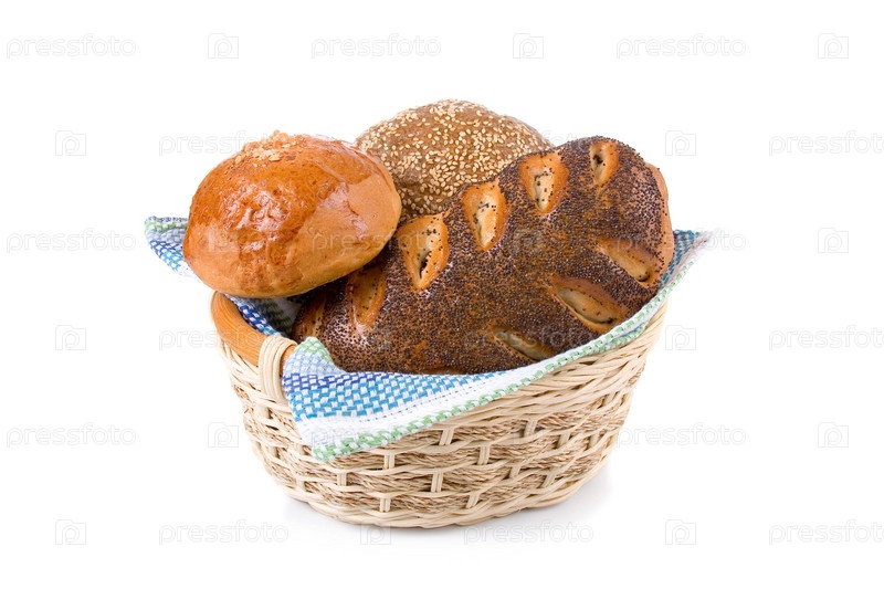 Хлеб в корзине, изолирован на белом фоне