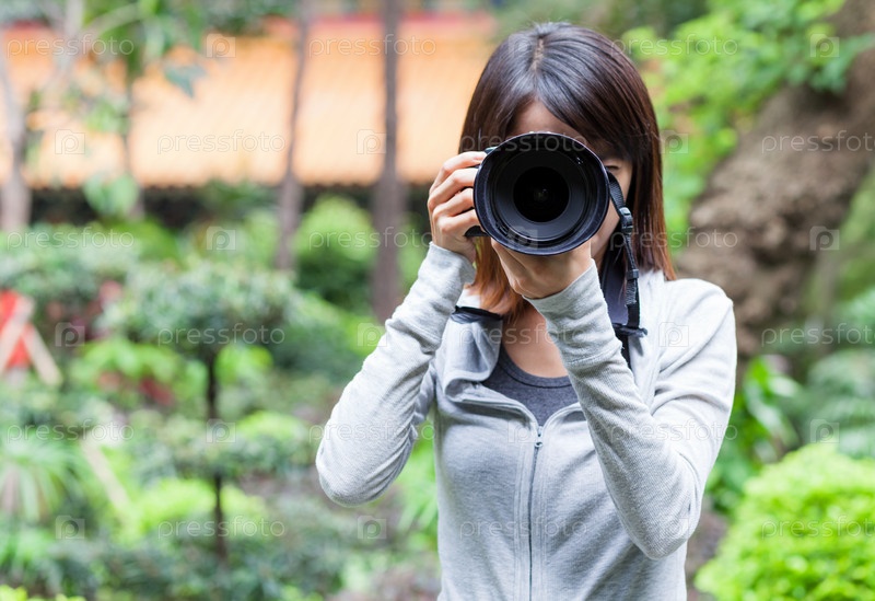 Молодая женщина с фотоаппаратом
