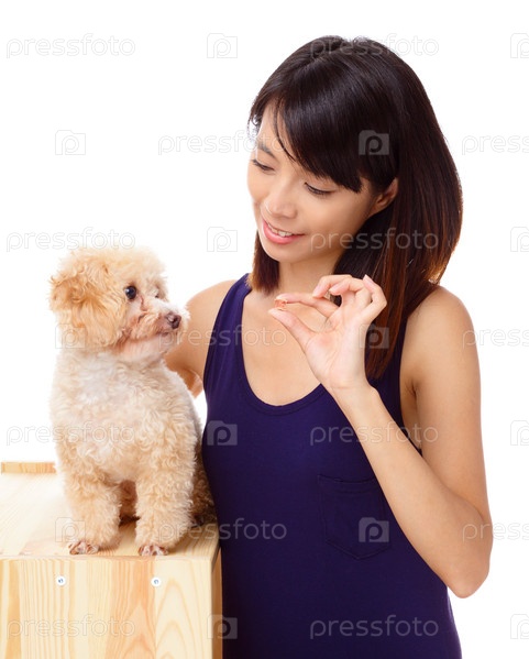 Женщина с собакой на белом фоне