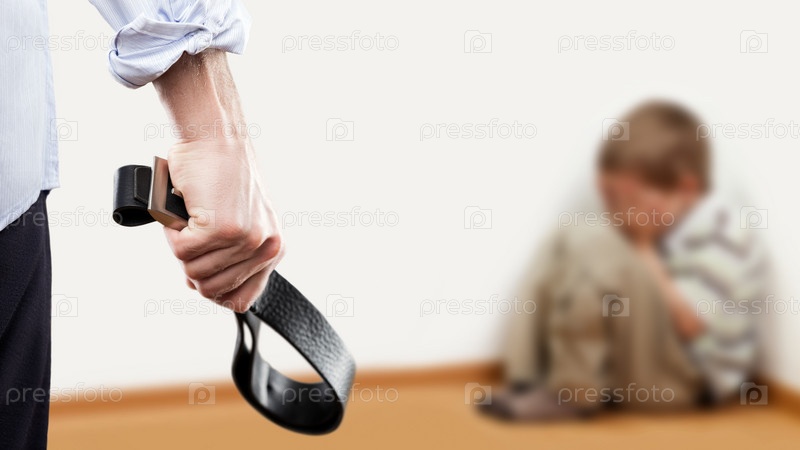 Мужчина бьет ребенка ремнем