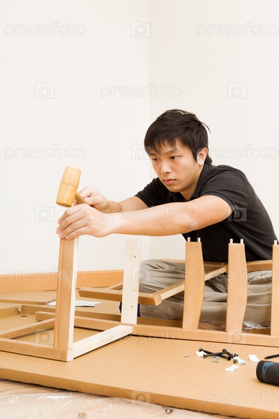 Мужчина собирает новый стол