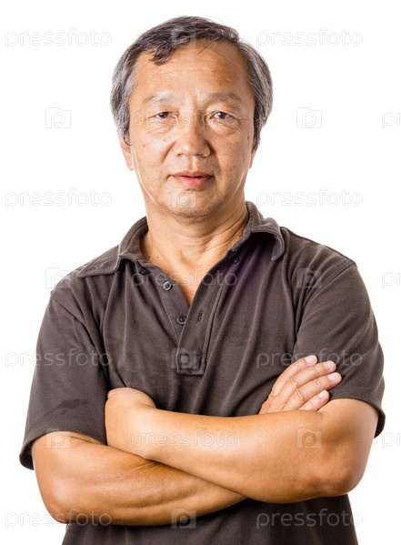 Азиатский мужчина со сложенными на груди руками на белом фоне