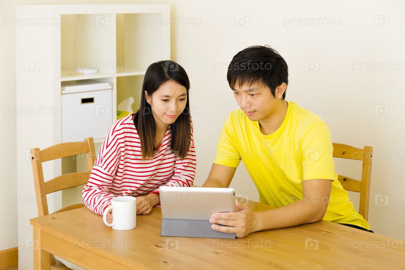 Молодая женщина и мужчина с планшетом