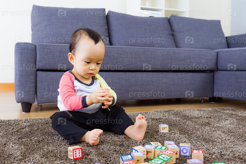 Маленький мальчик играет с игрушками
