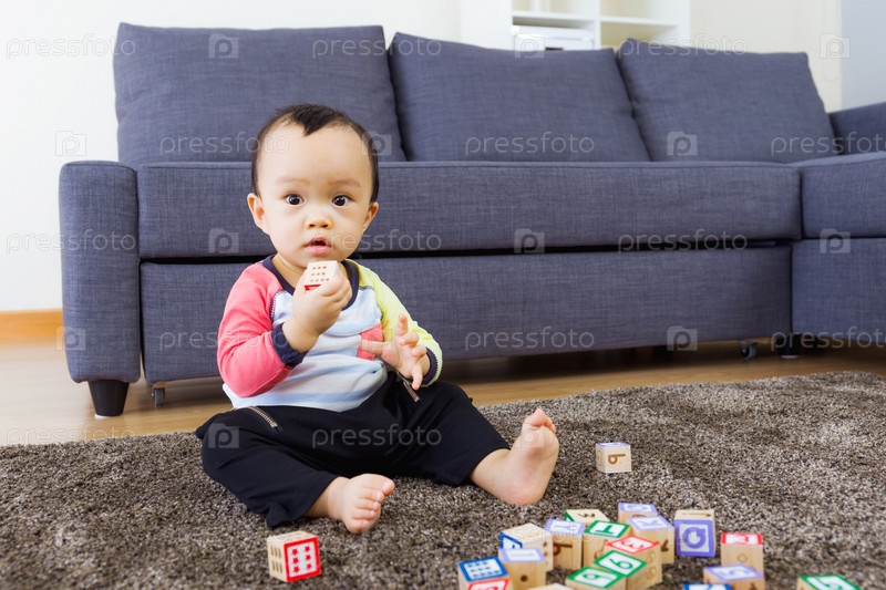 Маленький мальчик играет с игрушками