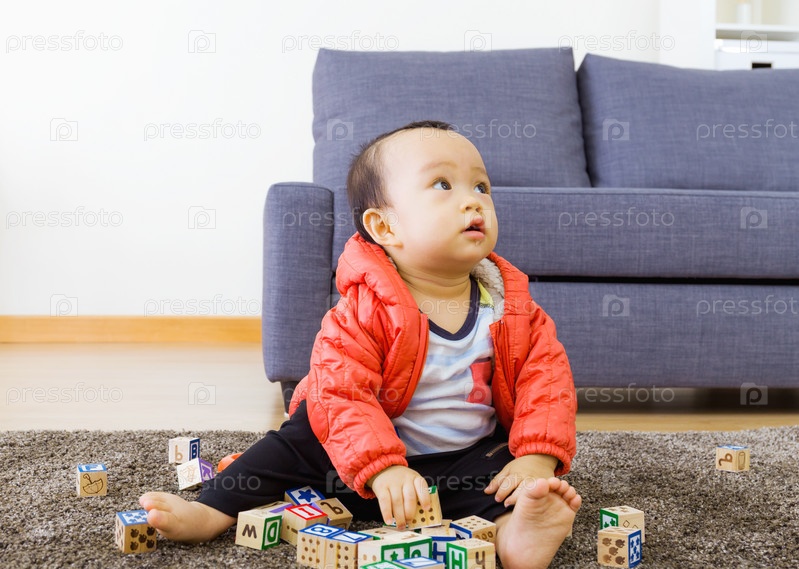 Маленький мальчик играет с игрушками