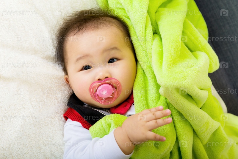 Ребенок под зеленым одеялом