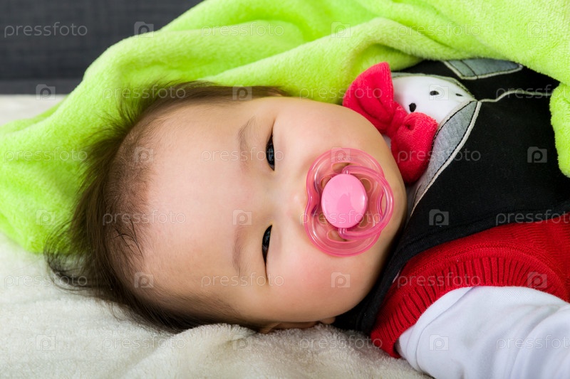 Ребенок под зеленым одеялом