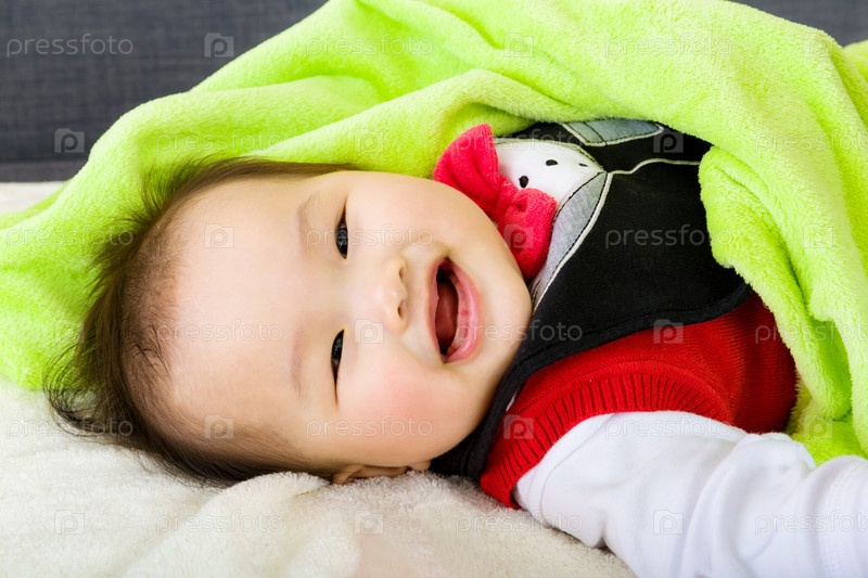 Ребенок под зеленым одеялом