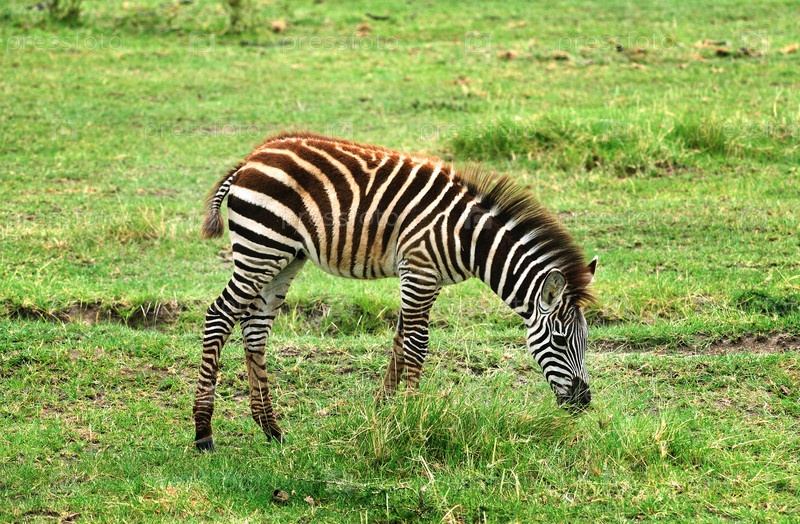 Зебра пасется на лугу