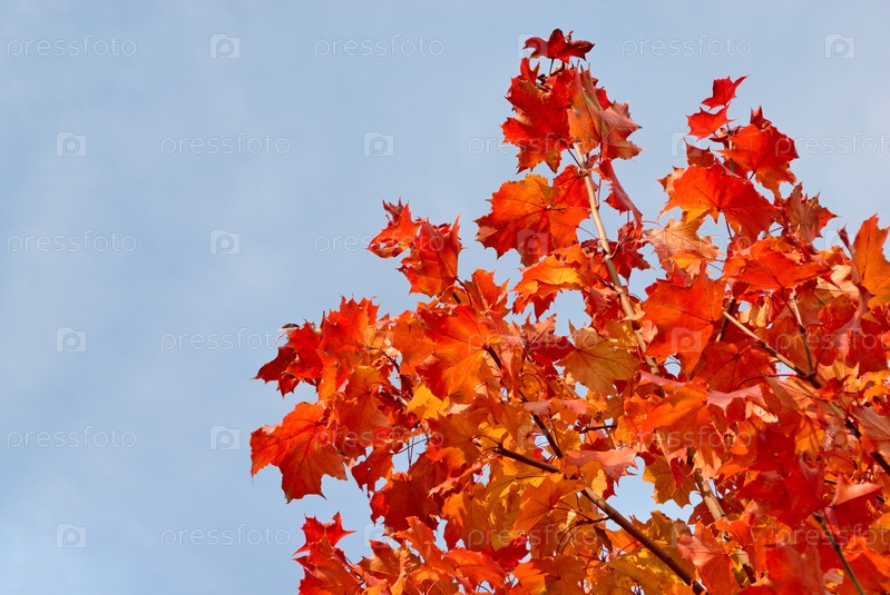 Осенний клен на фоне голубого неба
