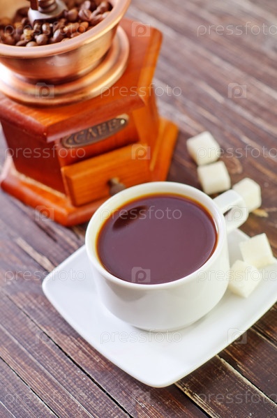 Чашка кофе и кофемолка