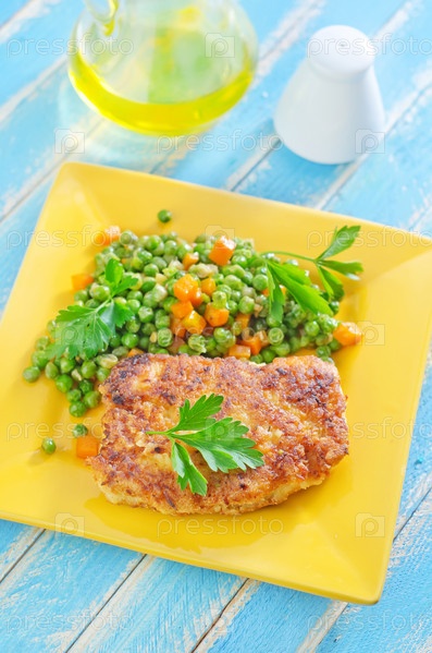 Котлета с гарниром на тарелке