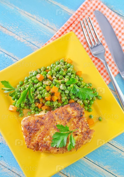 Котлета с гарниром на тарелке