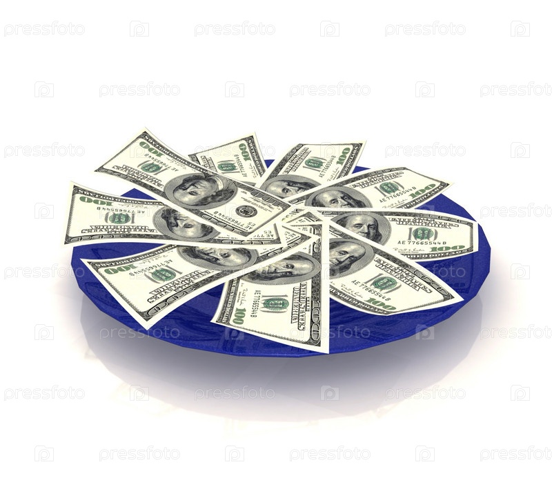 Доллары на синей тарелке